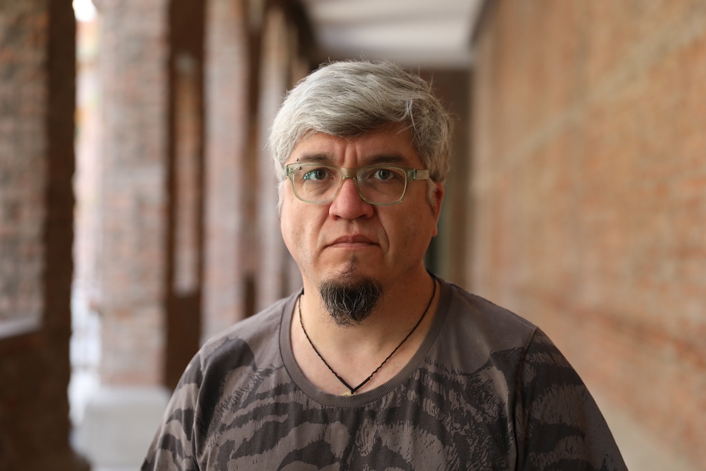 El doctor Olguín ha investigado cómo se pueden utilizar las células madre, tanto de animales como de plantas, para cultivar tejidos de manera controlada en laboratorio. En sus investigaciones, ha buscado desarrollar nuevas tecnologías que permitan optimizar el proceso de cultivo celular para producir proteínas y productos alimenticios de alta calidad. Fotografía de Karina Fuenzalida.