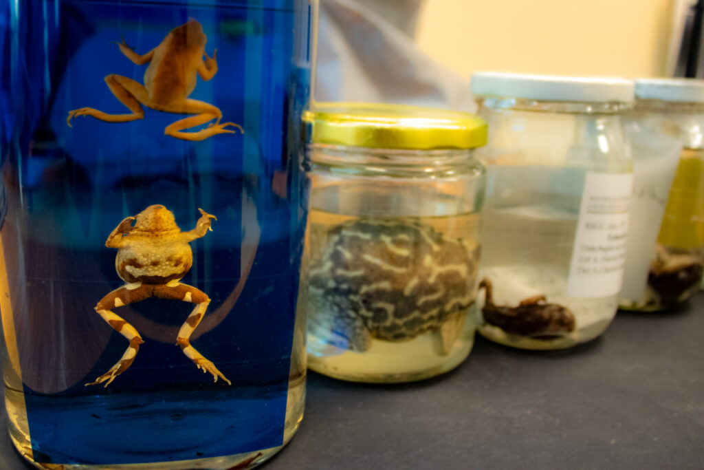 A lo que agrega: “También trabajó en la Senda Darwin y me consta que hay muchos especímenes de ahí. Por ejemplo, tenemos roedores que la etiqueta indica Fundación Senda Darwin y que fueron preparados por él. Es importante destacar que Andrés trabajó codo a codo con mi antecesor, Patricio Zavala, en la preparación de pieles, labor que requiere tiempo y una dedicación importante. Entonces, tenemos, por un lado, su aporte con los anfibios, que podríamos decir, era su fuerte como herpetólogo, pero él también estuvo muy involucrado en la identificación y preparación de especímenes de la colección que son los que exhibimos, por ejemplo, para el Día de los Patrimonios”.