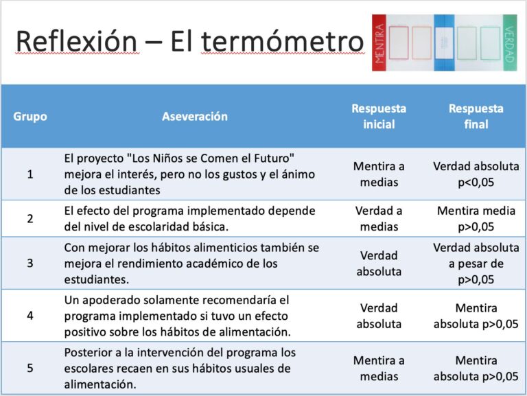 Un aspecto innovador destacado en este curso fue la introducción del “Termómetro Estadístico”. Esta herramienta reflexiva permitió a estudiantes cuestionar afirmaciones desafiantes en una escala termométrica, fusionando la evaluación subjetiva con un componente estadístico. En las presentaciones finales, los estudiantes aplicaron este termómetro a afirmaciones controversiales, experimentando cambios notables en sus evaluaciones, esta vez respaldadas por evidencia estadística y p-values.