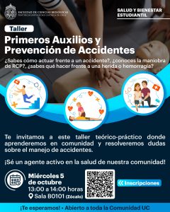 Eventos en octubre 5, 2022 Búsqueda y navegació de vistas de Eventos Show Eventos Search Búsqueda de Eventos Día de Buscar Navegación de vistas de Evento Ver como ListaMesDía « Día anterior Siguiente día » 1:00 pm Taller: Primeros Auxilios y Prevención de Accidentes octubre 5, 2022 @ 1:00 pm - 2:00 pm Sala B0101 (Zócalo), Sala B0101 (Zócalo) Más información » + Exportar Eventos