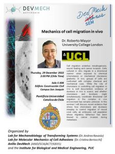 Eventos en diciembre 29, 2022 Búsqueda y navegació de vistas de Eventos Show Eventos Search Búsqueda de Eventos Día de Buscar Navegación de vistas de Evento Ver como ListaMesDía « Día anterior Siguiente día » Todo el Día Encuesta docente 2do Semestre 2022 noviembre 11, 2022 - diciembre 31, 2022 Online, Online Más información » En marcha Mujeres en ciencia, tecnología e innovación diciembre 1, 2022 @ 8:00 am - enero 23, 2023 @ 7:00 pm Online, Online Más información » 3:00 pm Mechanics of cell migration in vivo diciembre 29, 2022 @ 3:00 pm - 4:00 pm Campus San Joaquín, Campus San Joaquín Más información » + Exportar Eventos