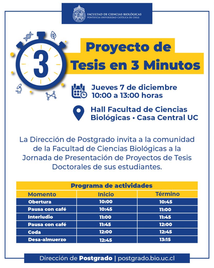 Eventos en diciembre 7, 2023 Búsqueda y navegació de vistas de Eventos Show Eventos Search Búsqueda de Eventos Día de Buscar Navegación de vistas de Evento Ver como ListaMesDía « Día anterior Siguiente día » En marcha Seminario de investigación BIO296 diciembre 5, 2023 @ 9:10 am - diciembre 11, 2023 @ 5:10 pm Salas B101, B102, B103 Más información » 10:00 am Proyecto de Tesis en 3 Minutos diciembre 7, 2023 @ 10:00 am - 1:00 pm Hall Facultad de Ciencias Biológicas Más información » 7:30 pm Interacciones plantas-hongos: ¿amigos o enemigos? diciembre 7, 2023 @ 7:30 pm - 8:30 pm Online, Online Más información » + Exportar Eventos