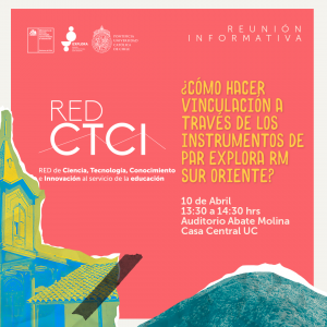 Eventos en abril 10, 2024 Búsqueda y navegació de vistas de Eventos Show Eventos Search Búsqueda de Eventos Día de Buscar Navegación de vistas de Evento Ver como ListaMesDía « Día anterior Siguiente día » 1:30 pm ¿Cómo hacer vinculación a través de los instrumentos de Par Explora RM Sur Oriente? abril 10, 2024 @ 1:30 pm - 2:30 pm Campus Casa Central, Campus Casa Central Más información » + Exportar Eventos