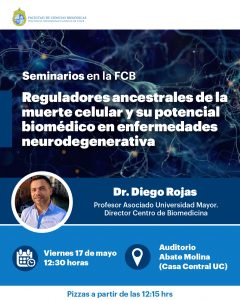 Eventos en mayo 17, 2024 Búsqueda y navegació de vistas de Eventos Show Eventos Search Búsqueda de Eventos Día de Buscar Navegación de vistas de Evento Ver como ListaMesDía « Día anterior Siguiente día » 12:30 pm Reguladores ancestrales de la muerte celular y su potencial biomédico en enfermedades neurodegenerativa mayo 17, 2024 @ 12:30 pm - 1:30 pm Auditorio Abate Molina, Auditorio Abate Molina Más información » + Exportar Eventos