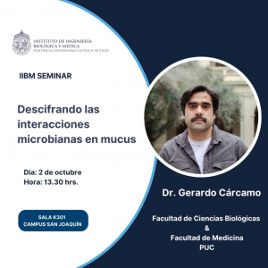 Eventos en octubre 2, 2024 Búsqueda y navegació de vistas de Eventos Show Eventos Search Búsqueda de Eventos Día de Buscar Navegación de vistas de Evento Ver como ListaMesDía « Día anterior Siguiente día » 1:30 pm Seminario IIBM: Descifrando las interacciones microbianas en mucus por Dr. Gerardo Cárcamo octubre 2, 2024 @ 1:30 pm - 2:30 pm K301, San Joaquín, K301, San Joaquín Santiago, Más información » + Exportar Eventos