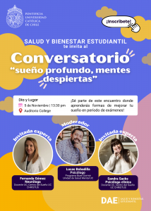 Eventos en noviembre 5, 2024 Búsqueda y navegació de vistas de Eventos Show Eventos Search Búsqueda de Eventos Día de Buscar Navegación de vistas de Evento Ver como ListaMesDía « Día anterior Siguiente día » Todo el Día Postulación: Representantes estudiantiles de doctorado | Link en @cienciasbiologicas_uc noviembre 4, 2024 - noviembre 15, 2024 Online, Online Más información » 1:30 pm Conversatorio “Sueño profundo, mentes despiertas” | Con inscripción noviembre 5, 2024 @ 1:30 pm - 3:00 pm Auditorio College, Auditorio College Santiago, Chile Más información » 3:00 pm Plazo postulaciones intercambio UC 2025-2 noviembre 5, 2024 @ 3:00 pm Online, Online Más información » + Exportar Eventos