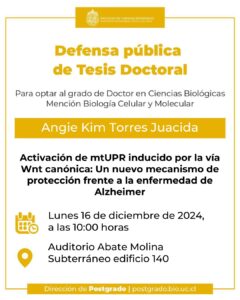 Eventos en diciembre 16, 2024 Búsqueda y navegació de vistas de Eventos Show Eventos Search Búsqueda de Eventos Día de Buscar Navegación de vistas de Evento Ver como ListaMesDía « Día anterior Siguiente día » Todo el Día Responde la encuesta docente en Canvas UC | Hasta el 17 de diciembre noviembre 13, 2024 - diciembre 17, 2024 Online, Online Más información » 10:00 am Defensa pública de Tesis Doctoral de Angie Kim Torres Juacida diciembre 16, 2024 @ 10:00 am - 11:30 am Auditorio Abate Molina, Auditorio Abate Molina Más información » + Exportar Eventos