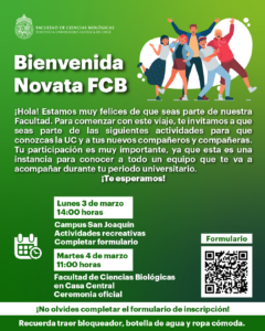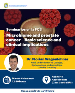 Eventos en marzo 4, 2025 Búsqueda y navegació de vistas de Eventos Show Eventos Search Búsqueda de Eventos Día de Buscar Navegación de vistas de Evento Ver como ListaMesDía « Día anterior Siguiente día » 11:00 am Bienvenida novata FCB 2025 marzo 4 @ 11:00 am - 5:00 pm Campus Casa Central, Campus Casa Central Más información » 12:30 pm Seminario: “Microbiome and prostate cancer – Basic science and clinical implications” marzo 4 @ 12:30 pm - 2:00 pm Auditorio Abate Molina, Auditorio Abate Molina Más información » Ceremonia de lanzamiento del concurso I+D para Innovar 2025 y premiación proyectos ganadores 2024 de la Fundación Copec-UC marzo 4 @ 12:30 pm - 1:30 pm Campus San Joaquín, Campus San Joaquín Más información » + Exportar Eventos