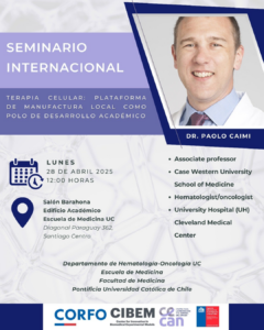 Eventos en abril 28, 2025 Búsqueda y navegació de vistas de Eventos Show Eventos Search Búsqueda de Eventos Día de Buscar Navegación de vistas de Evento Ver como ListaMesDía « Día anterior Siguiente día » 12:00 pm Seminario “Terapia celular: plataforma de manufactura local como polo de desarrollo académico” abril 28 @ 12:00 pm - 1:30 pm Auditorio Roberto Barahona – Facultad de Medicina, Diagonal Paraguay #362 Santiago, Chile Más información » + Exportar Eventos