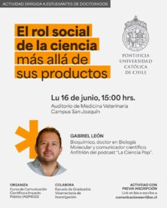 Eventos en junio 16, 2025 Búsqueda y navegació de vistas de Eventos Show Eventos Search Búsqueda de Eventos Día de Buscar Navegación de vistas de Evento Ver como ListaMesDía « Día anterior Siguiente día » En marcha ¡Participa de la Encuesta Docente! junio 11 @ 8:00 am - julio 14 @ 5:00 pm Online, Online Más información » 3:00 pm Charla “El rol social de la ciencia más allá de sus productos” con Gabriel León junio 16 @ 3:00 pm - 4:30 pm Campus San Joaquín, Campus San Joaquín Más información » + Exportar Eventos