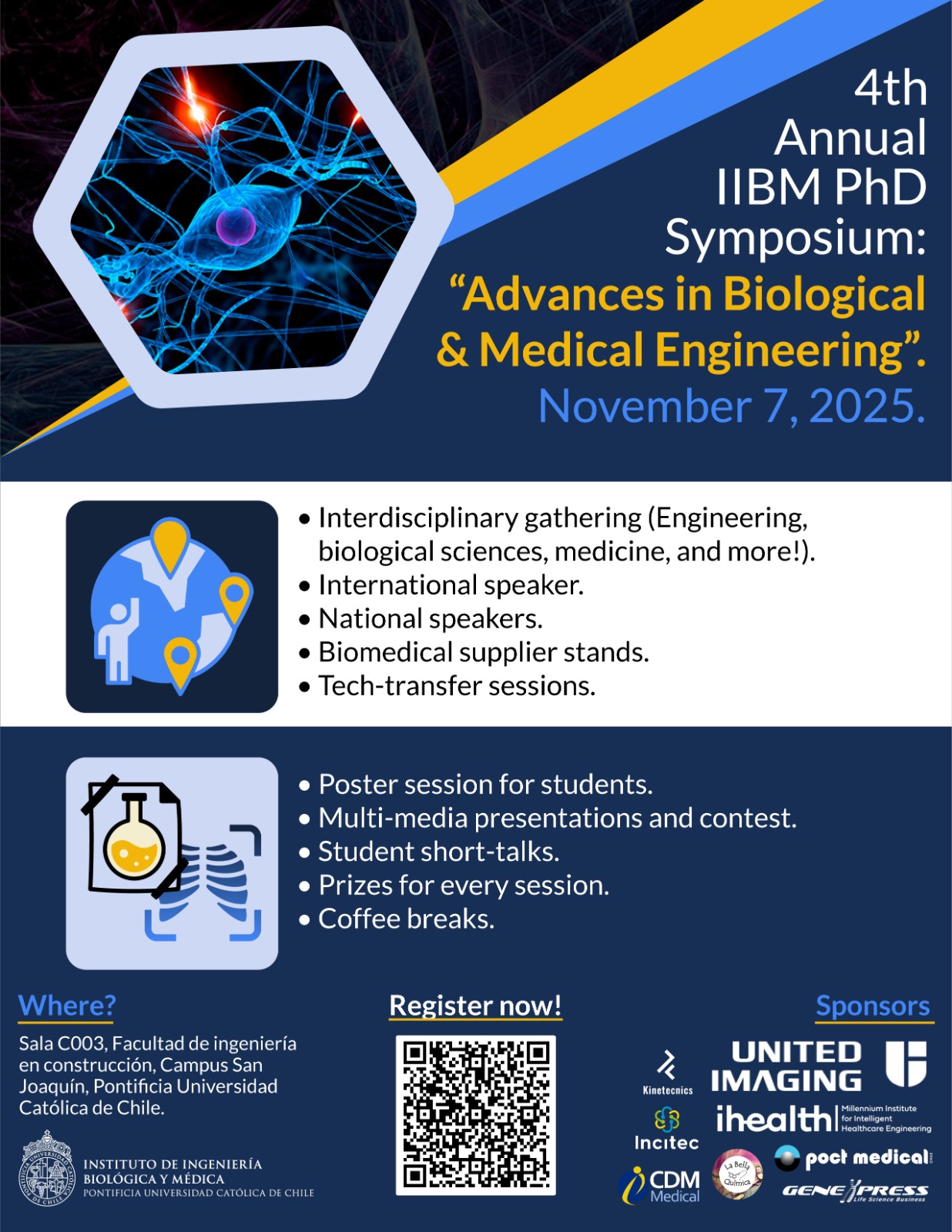 « Todos los Eventos Este evento ha pasado. 4º Simposio IIBM: “Avances en Ingeniería Biológica y Médica” noviembre 7 @ 8:30 am - 5:30 pm « Charla nueva malla para la carrera de Biología: opción de cambio de plan de estudios para estudiantes Admisión 2025 Seminario “Comunicación intercelular mediado por vesículas extracelulares y metabolitos: aplicaciones terapéuticas en patologías crónicas” » Compartir en...FacebookPinterestTwitterLinkedin + Google Calendar+ Exportar iCal Detalles Fecha: noviembre 7 Hora: 8:30 am - 5:30 pm Categoría del Evento: Calendario Portada Evento etiquetas:Instituto de Ingenieria Biologica y Medica Lugar Campus San Joaquín Campus San Joaquín