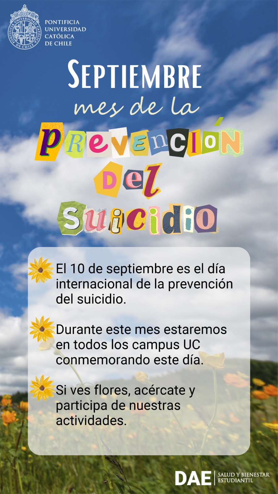 « Todos los Eventos Este evento ha pasado. Actividad Salud y Bienestar UC: Prevención del Suicidio SJ septiembre 10, 2024 @ 1:30 pm - 3:00 pm « Defensa de Tesis Doctoral: Jorge Olivares “Z-ring in multicellular cyanobacteria”. Seminario: Mecanismos celulares de los ensambles neuronales en la corteza visual primaria » Compartir en...FacebookPinterestTwitterLinkedin + Google Calendar+ Exportar iCal Detalles Fecha: septiembre 10, 2024 Hora: 1:30 pm - 3:00 pm Categoría del Evento: Calendario Portada Evento etiquetas:Prevencion, Salud Estudiantil UC Lugar Patio Enfermería, San Joaquín