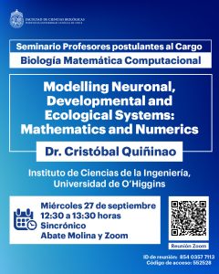 Eventos en septiembre 27, 2023 › Calendario Portada Búsqueda y navegació de vistas de Eventos Show Eventos Search Búsqueda de Eventos Día de Buscar Navegación de vistas de Evento Ver como ListaMesDía « Día anterior Siguiente día » 12:30 pm Modelling Neuronal, Developmental and Ecological Systems: Mathematics and Numerics septiembre 27, 2023 @ 12:30 pm - 1:30 pm Auditorio Abate Molina, Auditorio Abate Molina Más información » + Exportar Eventos