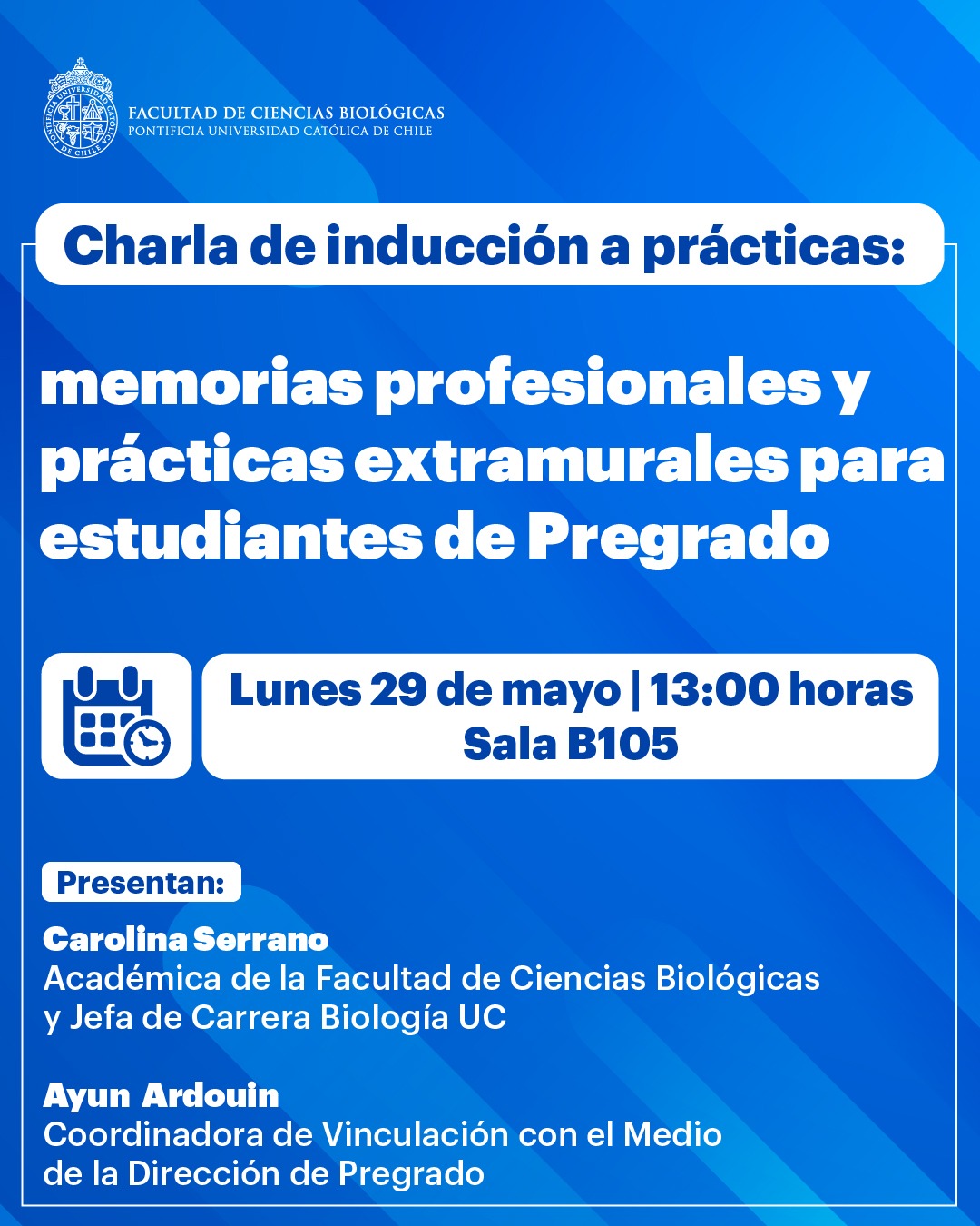 « Todos los Eventos Este evento ha pasado. Charla de inducción a prácticas: memorias profesionales y prácticas extramurales para estudiantes de Pregrado mayo 29, 2023 @ 1:00 pm - 2:00 pm « Capacitación ¿Cómo usar Microsoft Teams? Polycyclic Aromatic Hydrocarbon (PAH) fate in coastal environments: environmental factors and microorganisms » Compartir en...FacebookPinterestTwitterLinkedin + Google Calendar+ Exportar iCal Detalles Fecha: mayo 29, 2023 Hora: 1:00 pm - 2:00 pm Categoría del Evento: Calendario Portada Evento etiquetas:Pregrado Lugar Campus Casa Central Campus Casa Central