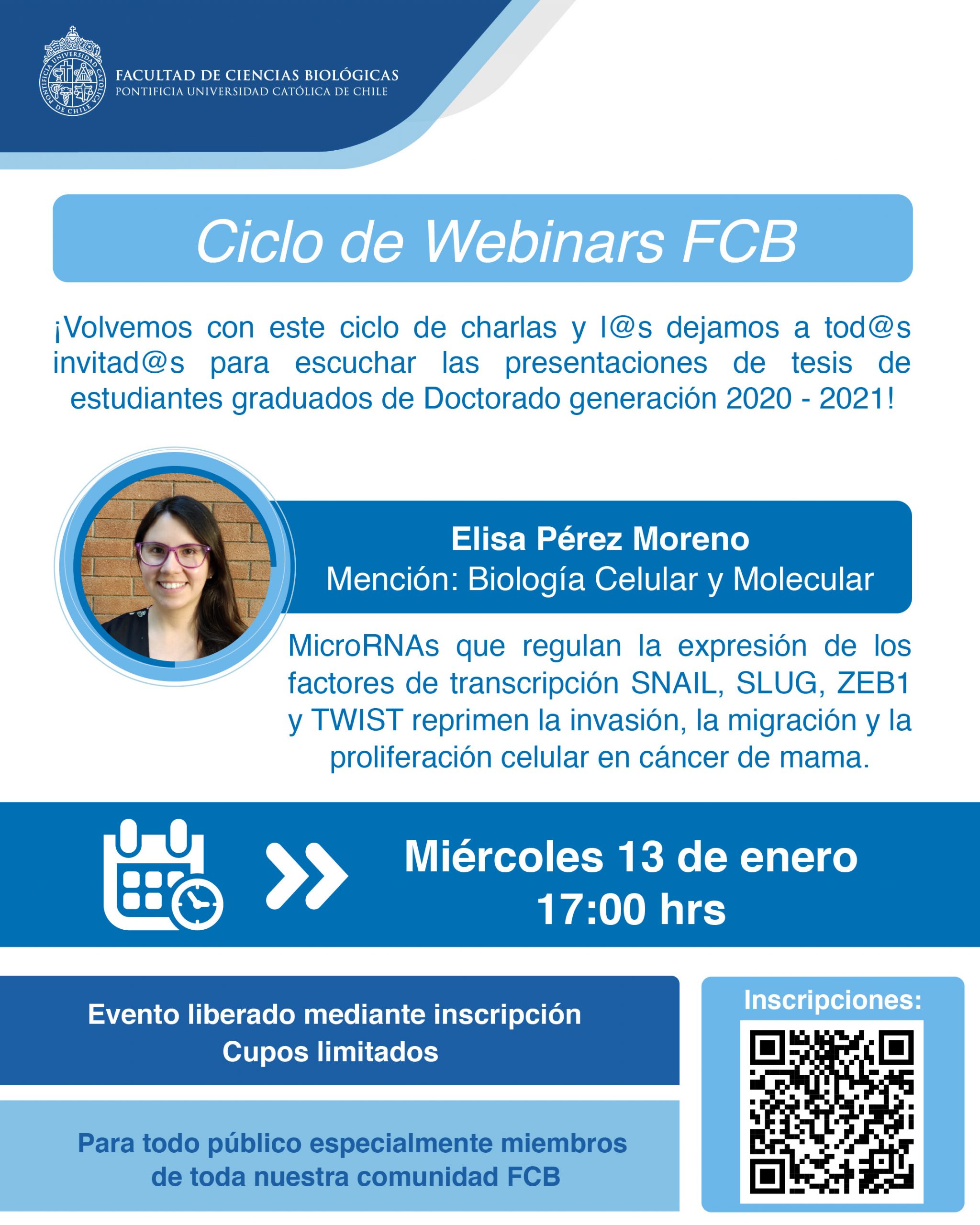 Ciclo de Webinars FCB: MicroRNAs que regulan la expresión de los factores de transcripción SNAIL, SLUG, ZEB1 y TWIST reprimen la invasión, la migración y la proliferación celular en cáncer de mama