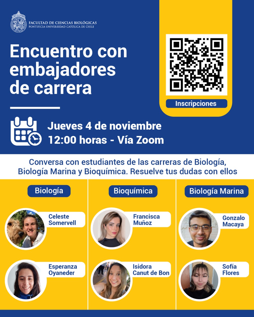 « Todos los Eventos Este evento ha pasado. Encuentro con embajadores de carrera noviembre 4, 2021 @ 12:00 pm - 1:00 pm « Ciclo de charlas: Carrera Biología Proceso de Admisión Doctorado en Biotecnología Vegetal 2022 » Compartir en...FacebookPinterestTwitterLinkedin + Google Calendar+ Exportar iCal Detalles Fecha: noviembre 4, 2021 Hora: 12:00 pm - 1:00 pm Categoría del Evento: Calendario Portada Evento etiquetas:Pregrado Lugar Online Online Organizador Pregrado