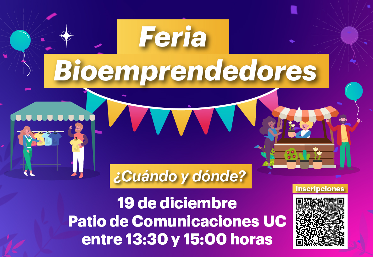 « Todos los Eventos Este evento ha pasado. Feria Bioemprendedores diciembre 19, 2024 @ 1:30 pm - 3:00 pm « Seminario: Transcriptómica y biología de sistemas para predecir metabolismo y comunicación celular Finaliza sorteo “Medicina en tu cocina” | Más info en @cienciasbiologicas_uc » Compartir en...FacebookPinterestTwitterLinkedin + Google Calendar+ Exportar iCal Detalles Fecha: diciembre 19, 2024 Hora: 1:30 pm - 3:00 pm Categoría del Evento: Calendario Portada Evento etiquetas:Bioemprendedores Lugar Patio Comunicaciones Patio Comunicaciones Santiago,
