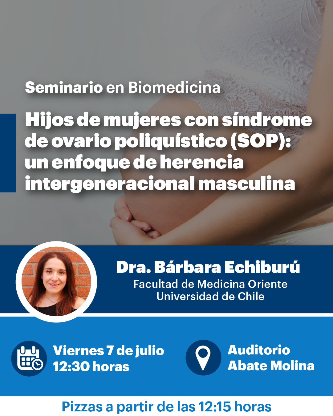 « Todos los Eventos Este evento ha pasado. Hijos de mujeres con síndrome de ovario poliquístico (SOP): un enfoque de herencia intergeneracional masculina julio 7, 2023 @ 12:30 pm - 1:30 pm « Ética animal y experimentación con animales no humanos Modulación de la respuesta inmune adaptativa mediante células Natural Killer T » Compartir en...FacebookPinterestTwitterLinkedin + Google Calendar+ Exportar iCal Detalles Fecha: julio 7, 2023 Hora: 12:30 pm - 1:30 pm Categoría del Evento: Calendario Portada Evento etiquetas:Seminario Lugar Auditorio Abate Molina Auditorio Abate Molina