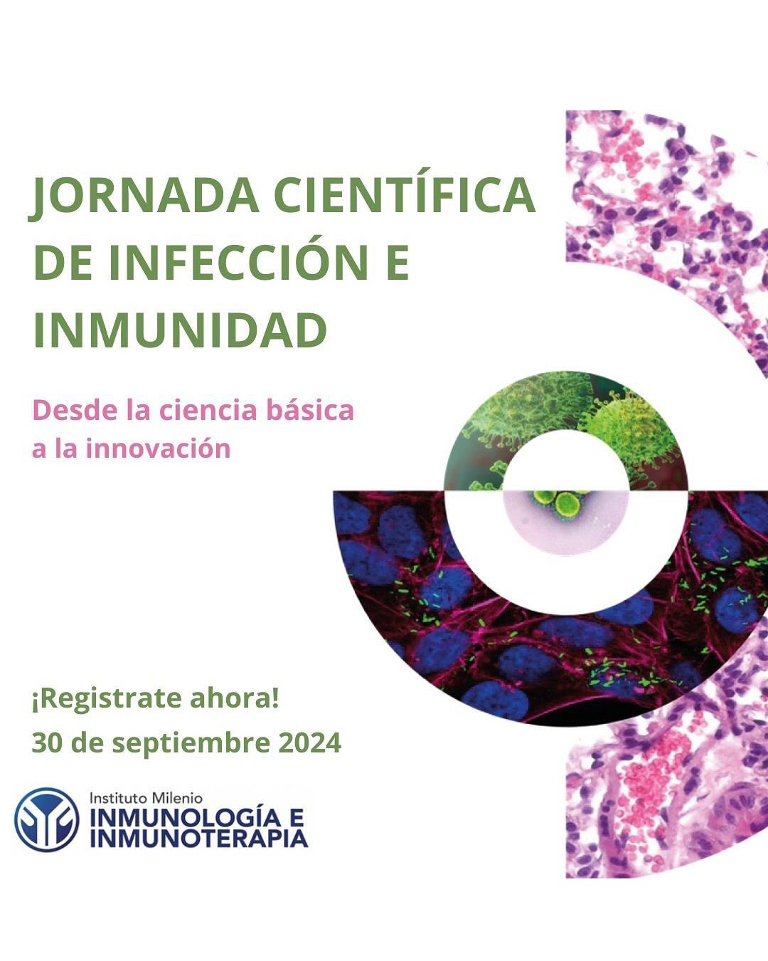 « Todos los Eventos Este evento ha pasado. Jornada Científica de Infección e Inmunidad: desde la ciencia básica a la innovación. Con inscripción septiembre 30, 2024 @ 8:30 am - 6:30 pm « Actividad Salud y Bienestar UC: Prevención del Suicidio Seminario: Plant Gene Regulation and Functional Genomics » Compartir en...FacebookPinterestTwitterLinkedin + Google Calendar+ Exportar iCal Detalles Fecha: septiembre 30, 2024 Hora: 8:30 am - 6:30 pm Categoría del Evento: Calendario Portada Evento etiquetas:Jornada Lugar Aula Magna Manuel José Irarrázabal Aula Magna Manuel José Irarrázabal Santiago, Chile