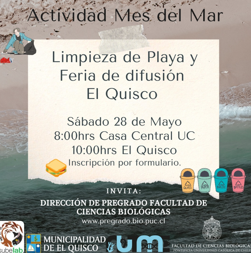 « Todos los Eventos Este evento ha pasado. Limpieza de Playa y Feria de Difusión El Quisco mayo 28, 2022 @ 8:00 am - 8:30 am « Chile, el paraíso natural para una ecóloga microbiana Exhibición de una seleccion de la Colección Patricio Sánchez » Compartir en...FacebookPinterestTwitterLinkedin + Google Calendar+ Exportar iCal Detalles Fecha: mayo 28, 2022 Hora: 8:00 am - 8:30 am Categoría del Evento: Calendario Portada Evento etiquetas:Pregrado Página Web: https://www.instagram.com/p/CdbG2eOFvdu/ Lugar Campus Casa Central Campus Casa Central