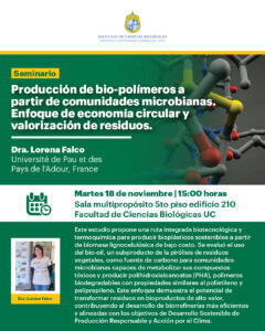 Eventos pasados Búsqueda y navegació de vistas de Eventos Show Eventos Search Búsqueda de Eventos Eventos Desde Buscar Navegación de vistas de Evento Ver como ListaMesDía « Eventos anterior Siguientes Eventos » noviembre 2025 Charla nueva malla para la carrera de Biología: opción de cambio de plan de estudios para estudiantes Admisión 2025 noviembre 4 @ 1:30 pm - 2:30 pm Campus Casa Central, Campus Casa Central Más información » 4º Simposio IIBM: “Avances en Ingeniería Biológica y Médica” noviembre 7 @ 8:30 am - 5:30 pm Campus San Joaquín, Campus San Joaquín Más información » Seminario “Comunicación intercelular mediado por vesículas extracelulares y metabolitos: aplicaciones terapéuticas en patologías crónicas” noviembre 7 @ 12:30 pm - 1:30 pm Campus Casa Central, Campus Casa Central Más información » Charla nueva malla carrera Biología Marina noviembre 7 @ 1:30 pm - 2:30 pm Campus Casa Central, Campus Casa Central Más información » Seminario “Strategies to identify novel psychostimulants and therapeutic targets to mitigate their use” noviembre 12 @ 12:30 pm - 1:30 pm Campus Casa Central, Campus Casa Central Más información » Seminario “Is protein synthesis a local brake for the regeneration of cortical axons?” noviembre 14 @ 12:30 pm - 1:30 pm Campus Casa Central, Campus Casa Central Más información » Día del autocuidado FCB noviembre 17 @ 1:30 pm - 3:00 pm Campus Casa Central, Campus Casa Central Más información » Feria laboral “Ciencias UC” noviembre 18 @ 1:00 pm - 5:00 pm Campus San Joaquín, Campus San Joaquín Más información » Seminario “Producción de bio-polímeros a partir de comunidades microbianas. Enfoque de economía circular y valorización de residuos” noviembre 18 @ 3:00 pm - 4:00 pm Campus Casa Central, Campus Casa Central Más información » Encuentro Bio-Lógico noviembre 20 @ 10:00 am - 2:00 pm Campus Casa Central, Campus Casa Central Más información » + Exportar Eventos