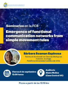 Eventos pasados Búsqueda y navegació de vistas de Eventos Show Eventos Search Búsqueda de Eventos Eventos Desde Buscar Navegación de vistas de Evento Ver como ListaMesDía « Eventos anterior Siguientes Eventos » agosto 2025 Talleres para mujeres científicas: “Construir con LEGO Serious Play” agosto 19 @ 9:30 am - 1:30 pm Campus Casa Central, Campus Casa Central Más información » Jornada de Grupo Enfermedades Poco Frecuentes UC: sesión de posters y conversatorio agosto 26 @ 9:00 am - 1:00 pm Campus Casa Central, Campus Casa Central Más información » Diálogo Universitario: “En la UC me atrevo y puedo opinar distinto” agosto 26 @ 1:30 pm - 3:30 pm Campus San Joaquín, Campus San Joaquín Más información » Seminario “Patrimonio natural de la comuna de Purranque: una mirada a la biodiversidad del sur de Chile” agosto 27 @ 11:30 am - 12:30 pm Campus Casa Central, Campus Casa Central Más información » Un día en el Doctorado agosto 28 @ 11:00 am - 4:00 pm Campus Casa Central, Campus Casa Central Más información » septiembre 2025 Academia que impacta. Primera sesión “Del paper a la pantalla” septiembre 3 @ 3:00 pm - 5:00 pm Campus San Joaquín, Campus San Joaquín Más información » Seminario: “Emergence of functional communication networks from simple movement rules” septiembre 5 @ 12:00 pm - 2:00 pm Campus Casa Central, Campus Casa Central Más información » Seminario: “Rol del Lateral Septum en el control de la alimentación. Implicancias en el desarrollo de obesidad” septiembre 12 @ 11:00 am - 12:30 pm Campus Casa Central, Campus Casa Central Más información » Seminario “La vida del ARN mensajero: nuevas miradas desde levaduras y microorganismos marinos” septiembre 22 @ 12:30 pm - 2:00 pm Campus Casa Central, Campus Casa Central Más información » Jornada de presentación del grupo Resiliencia en Biología Celular y Tisular (Rebicet) septiembre 23 @ 9:30 am - 1:00 pm Campus Casa Central, Campus Casa Central Más información » + Exportar Eventos