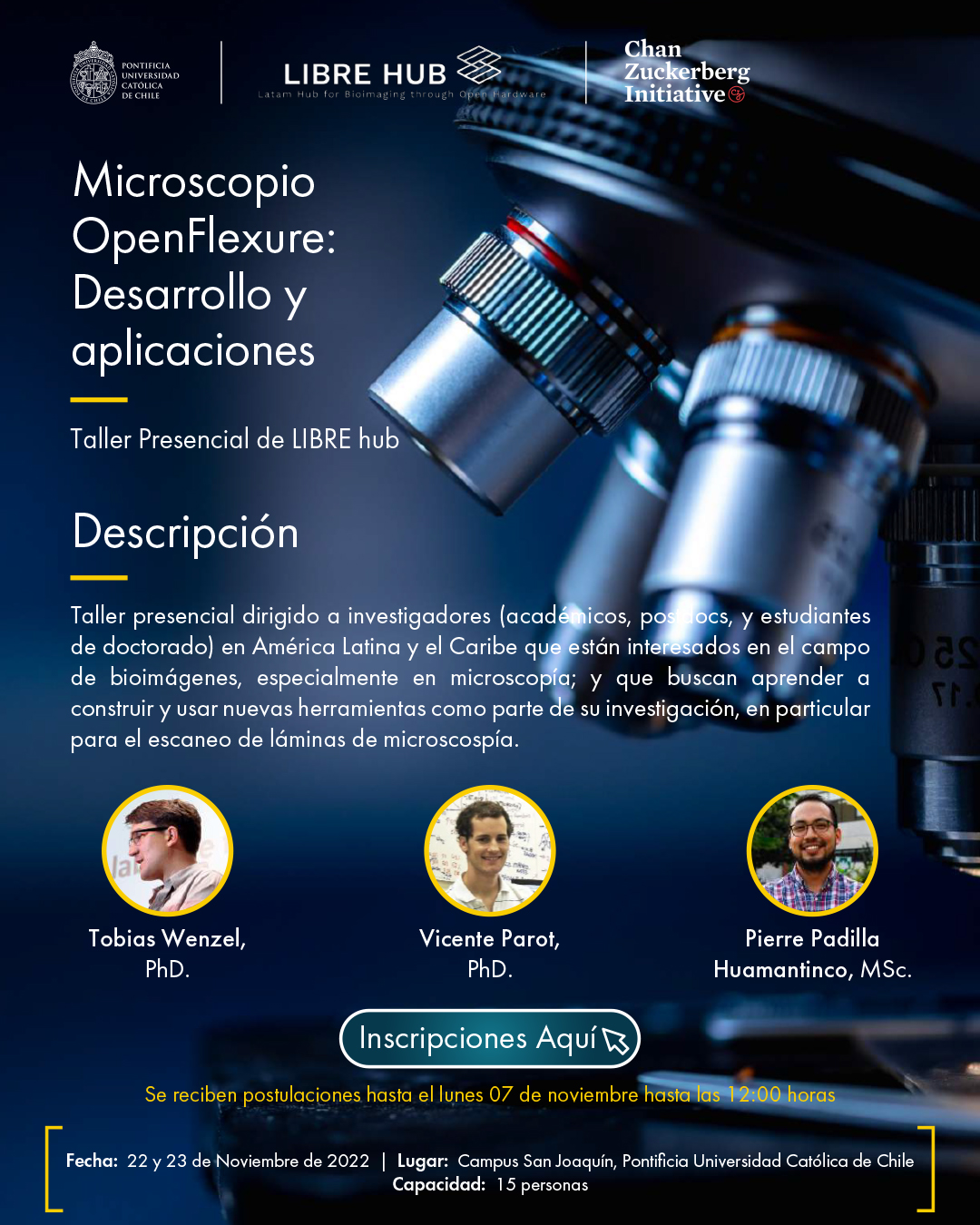 « Todos los Eventos Este evento ha pasado. Microscopio OpenFlexure: Desarrollo y aplicaciones noviembre 22, 2022 - diciembre 23, 2022 « Proteómica funcional y estrategias experimentales para estudiar la regulación del transporte intracelular de lípidos y proteínas Desde la edad media de COVID-19 al renacimiento por la vacunación » Compartir en...FacebookPinterestTwitterLinkedin + Google Calendar+ Exportar iCal Detalles Comienza: noviembre 22, 2022 Finaliza: diciembre 23, 2022 Evento etiquetas:Workshop Página Web: https://docs.google.com/forms/d/e/1FAIpQLSf_9sOCSWtYf3g3kFogytVY7BQBDwVlXuxIc3t2ImaILsD0Zg/viewform Lugar Campus San Joaquín Campus San Joaquín