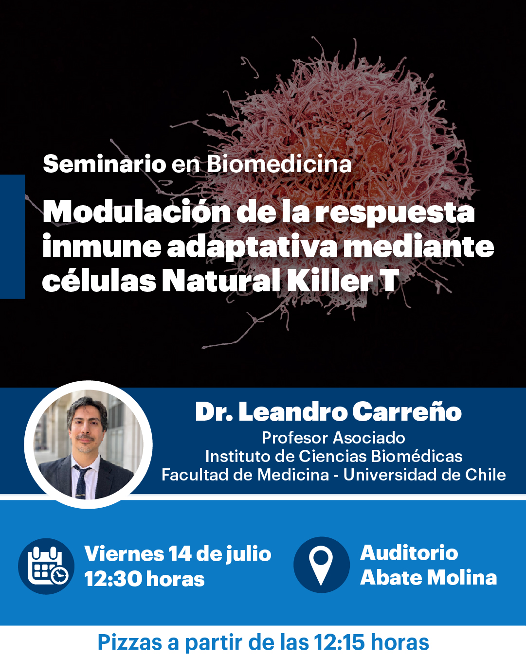 « Todos los Eventos Este evento ha pasado. Modulación de la respuesta inmune adaptativa mediante células Natural Killer T julio 14, 2023 @ 12:30 pm - 1:30 pm « Hijos de mujeres con síndrome de ovario poliquístico (SOP): un enfoque de herencia intergeneracional masculina Paleogenómica en Sudamérica: alcances y perspectivas » Compartir en...FacebookPinterestTwitterLinkedin + Google Calendar+ Exportar iCal Detalles Fecha: julio 14, 2023 Hora: 12:30 pm - 1:30 pm Categoría del Evento: Calendario Portada Evento etiquetas:Seminario Lugar Auditorio Abate Molina Auditorio Abate Molina