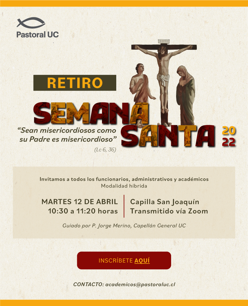 « Todos los Eventos Este evento ha pasado. Retiro Semana Santa 2022 abril 12, 2022 @ 10:30 am - 11:30 am « Derechos animales en la constitución ¿Qué pasó finalmente? [Online] Taller: Norma APA: aprende a citar y hacer referencias – 7a Edición » Compartir en...FacebookPinterestTwitterLinkedin + Google Calendar+ Exportar iCal Detalles Fecha: abril 12, 2022 Hora: 10:30 am - 11:30 am Categoría del Evento: Calendario Portada Evento etiquetas:Pastoral UC Página Web: https://docs.google.com/forms/d/e/1FAIpQLSfwvAWZrQJQh9z8z4KajDELAlJHAL2WvvGSL-yAEm0ulSxYVw/viewform?vc=0&c=0&w=1&flr=0 Lugar Online Online