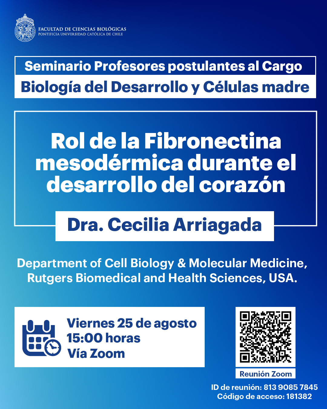 « Todos los Eventos Este evento ha pasado. Rol de la Fibronectina mesodérmica durante el desarrollo del corazón agosto 25, 2023 @ 3:00 pm - 4:00 pm « Fosfo-ECE-1c: un novedoso biomarcador de mal pronóstico en cáncer colorrectal Disfunción de células T en cáncer y autoinmunidad: el burnout de la respuesta celular » Compartir en...FacebookPinterestTwitterLinkedin + Google Calendar+ Exportar iCal Detalles Fecha: agosto 25, 2023 Hora: 3:00 pm - 4:00 pm Categoría del Evento: Calendario Portada Evento etiquetas:Seminario Lugar Online Online