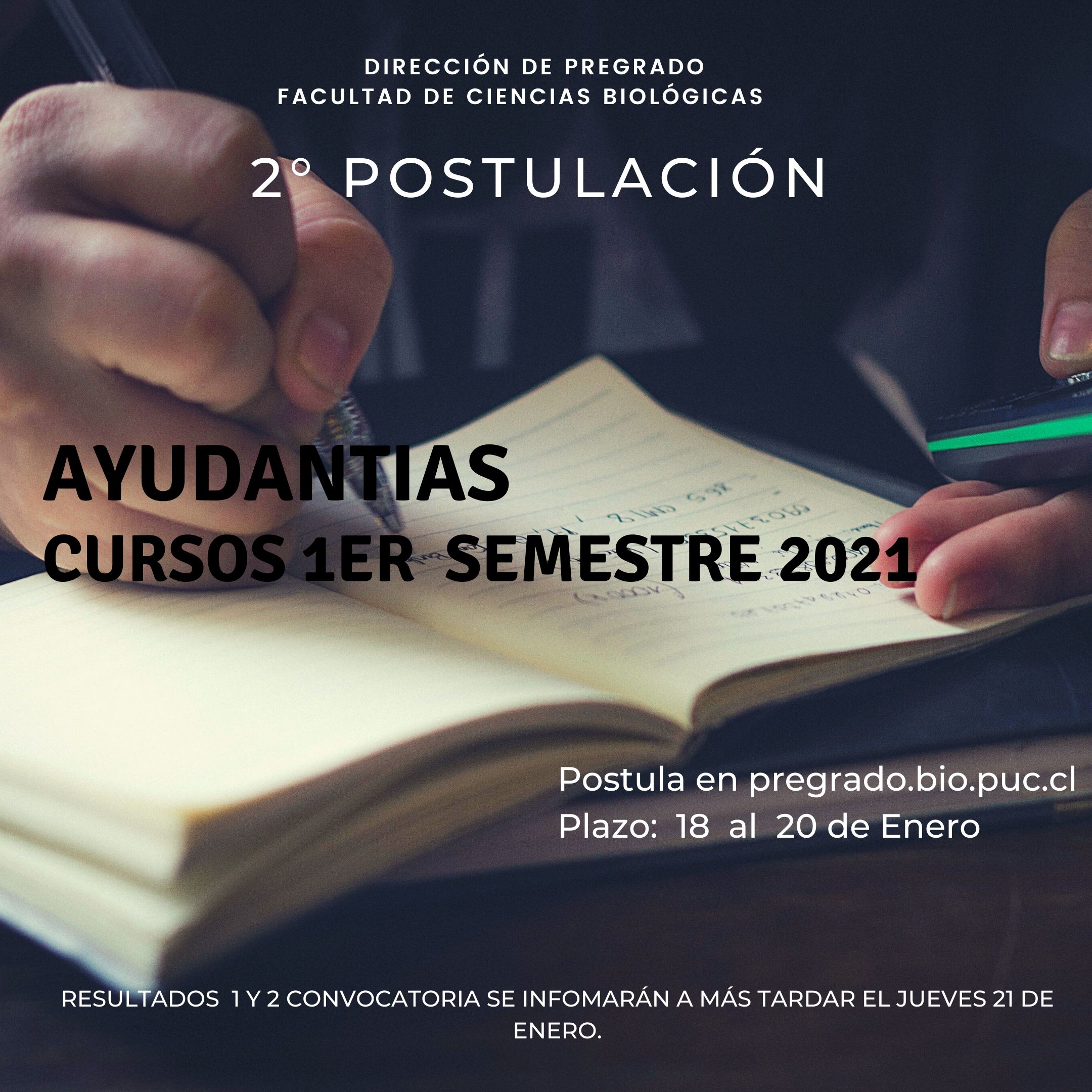 « Todos los Eventos Este evento ha pasado. Segunda Postulación ayudantías Primer semestre 2021 enero 19, 2021 @ 8:00 am - enero 20, 2021 @ 6:00 pm « [Lanzamiento del libro] “Mujeres navegantes y de orilla: Innovación y tradición alimentaria con sabor a mar” Jornada de Facultad 2021 » Compartir en...FacebookPinterestTwitterLinkedin + Google Calendar+ Exportar iCal Detalles Comienza: enero 19, 2021 @ 8:00 am Finaliza: enero 20, 2021 @ 6:00 pm Categoría del Evento: Calendario Portada Evento etiquetas:Pregrado Página Web: http://pregrado.bio.uc.cl/noticias/segunda-postulacion-ayudantias-primer-semestre-2021/ Lugar Online Online
