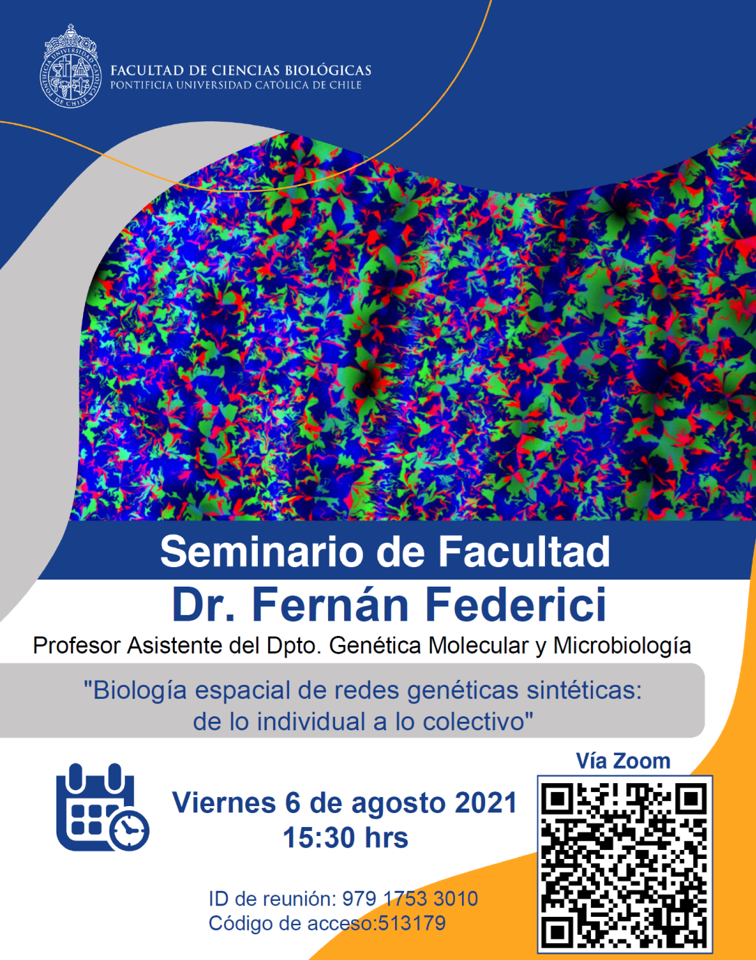 « Todos los Eventos Este evento ha pasado. Seminario de Facultad Biología espacial de redes genéticas sintéticas: de lo individual a lo colectivo agosto 6, 2021 @ 3:30 pm - 4:30 pm « Taller Mes de la Citometría de Flujo: descubriendo los secretos para que tu citometría de flujo sea exitosa Nuevas perspectivas de lo que sabemos sobre la acomulación de hierro en semillas » Compartir en...FacebookPinterestTwitterLinkedin + Google Calendar+ Exportar iCal Detalles Fecha: agosto 6, 2021 Hora: 3:30 pm - 4:30 pm Categoría del Evento: Calendario Portada Evento etiquetas:Fernan Federici Página Web: https://zoom.us/j/97917533010?pwd=RWIveHE1b201ZGVGbkkxKzJjaWhHQT09 Lugar Online Online