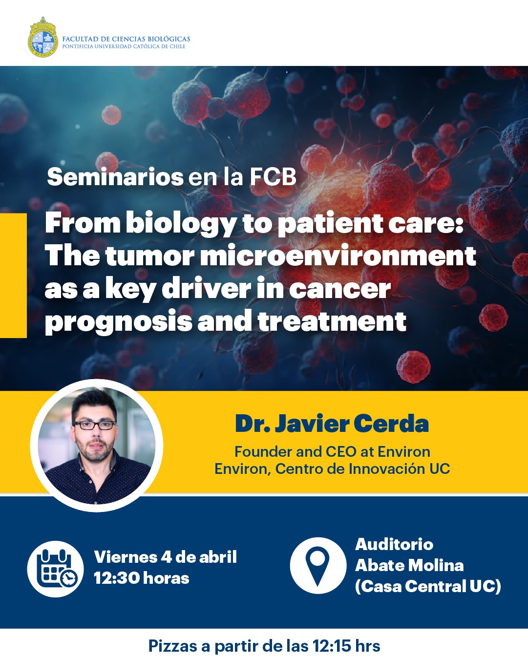 « Todos los Eventos Este evento ha pasado. Seminario “From biology to patient care: the tumor microenvironment as a key driver in cancer prognosis and treatment” abril 4 @ 12:00 pm - 2:00 pm « Seminario “Fisheries, Fur and Feathers: Conservation Management of Southern Ocean Marine Predators” Concurso de Arte Microbiológico » Compartir en...FacebookPinterestTwitterLinkedin + Google Calendar+ Exportar iCal Detalles Fecha: abril 4 Hora: 12:00 pm - 2:00 pm Categoría del Evento: Calendario Portada Evento etiquetas:Seminarios en la FCB