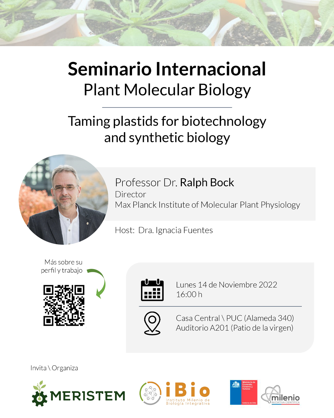 « Todos los Eventos Este evento ha pasado. Taming plastids for biotechnology and syntethic biology noviembre 14, 2022 @ 4:00 pm - 5:00 pm « Encuesta docente 2do Semestre 2022 Encuentro con Mujeres en IA » Compartir en...FacebookPinterestTwitterLinkedin + Google Calendar+ Exportar iCal Detalles Fecha: noviembre 14, 2022 Hora: 4:00 pm - 5:00 pm Categoría del Evento: Calendario Portada Evento etiquetas:Seminario Lugar Auditorio A201 (Patio de la virgen) Auditorio A201 (Patio de la virgen)