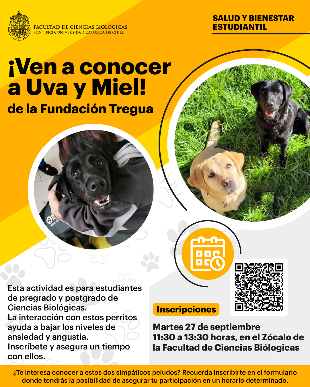 « Todos los Eventos Este evento ha pasado. ¡Ven a conocer a Uva y Miel! septiembre 27, 2022 @ 11:30 am - 1:30 pm « Adaptaciones microbianas: Lecciones de la metagenómica con ADN antiguo o moderno Taller Primeros Auxilios y Prevención de Accidentes » Compartir en...FacebookPinterestTwitterLinkedin + Google Calendar+ Exportar iCal Detalles Fecha: septiembre 27, 2022 Hora: 11:30 am - 1:30 pm Categoría del Evento: Calendario Portada Evento etiquetas:Salud Estudiantil UC Página Web: https://docs.google.com/forms/d/e/1FAIpQLSeYpGdikHuYYeleAs9GTvHcvfKfnl38AfLOH-s5fZVjKLP9bw/viewform Lugar Zócalo Zócalo