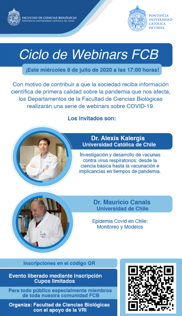 “Los cuatro Departamentos de la Facultad nos pusimos de acuerdo y propusimos hacer una serie de 3 webinars quincenalmente sobre COVID-19. Es una iniciativa de la Facultad auspiciada por la VRI y queremos que todos participen”, nos cuenta el Dr. Rodrigo Iturriaga.