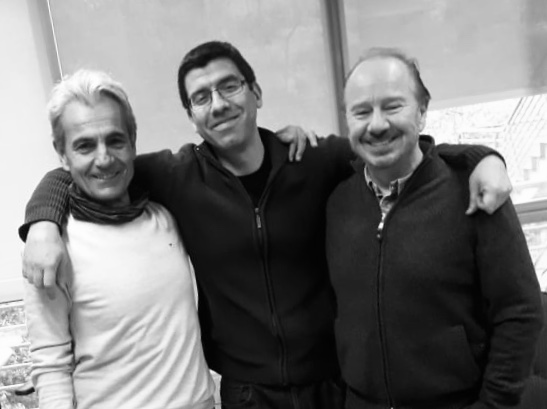 Dr. Mauro Santos junto a los Doctores Enrico Rezende y Francisco Bozinovic en la Facultad de Ciencias Biológicas