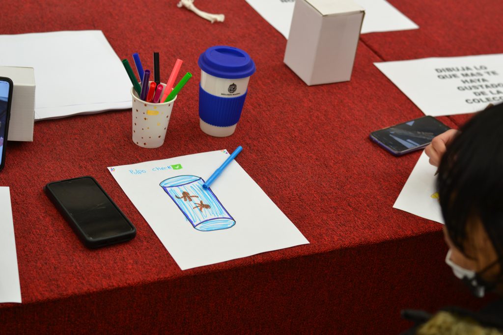 adolescentes que participaron dibujando lo que más les gustó de la Colección.