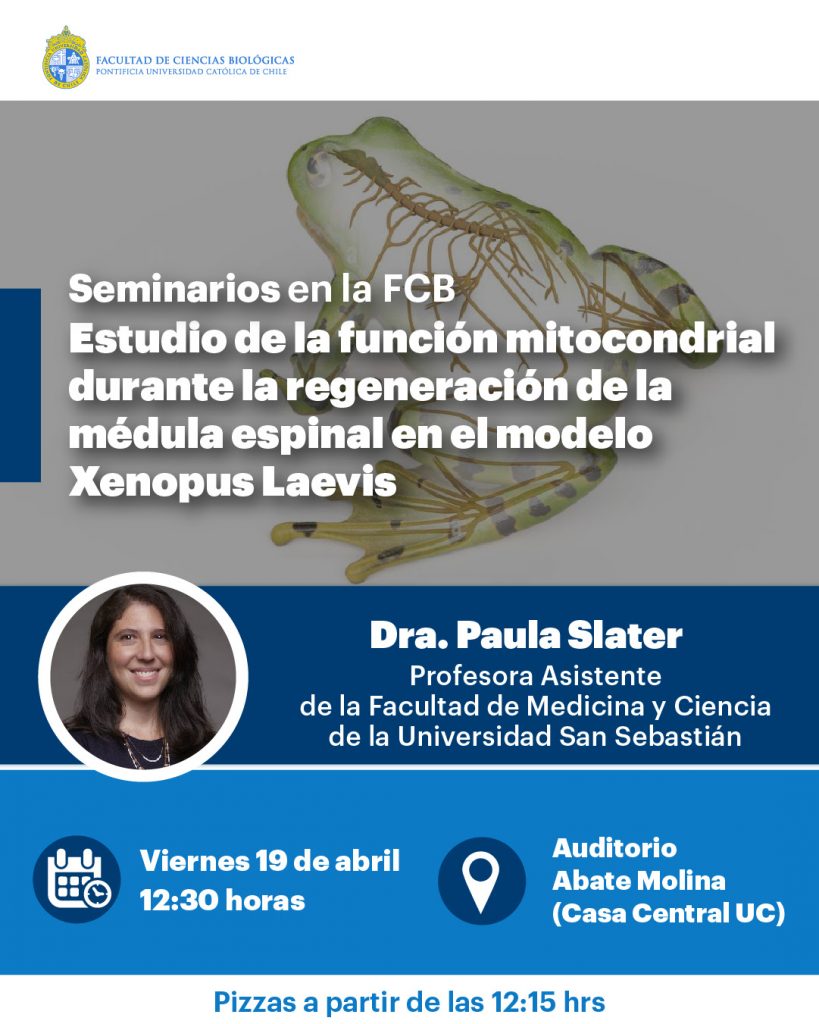 La Dra. Paula Slater, bioquímica de Pontificia Universidad Católica de Chile y actual académica de la Facultad de Medicina y Ciencia de la Universidad San Sebastián, expone su investigación enfocada en el estudio de la función del citoesqueleto y de las mitocondrias durante el desarrollo y regeneración axonal. Para ello, utiliza el modelo Xenopus laevis para el estudio del desarrollo neuronal, así como regeneración neuronal y de la médula espinal.
