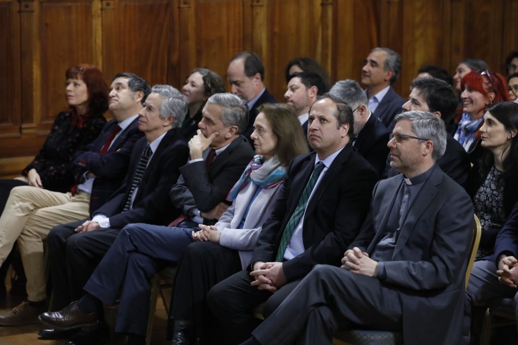 “Me gustaría destacar la decanatura de Juan Correa que ha sido explícitamente detallada tanto por sus logros que avizora dentro de su trabajo, como también por el reconocimiento de la decana Fernanda Pérez por su gestión”, dijo el rector Ignacio Sánchez durante la ceremonia. Créditos fotográficos de César Cortés.