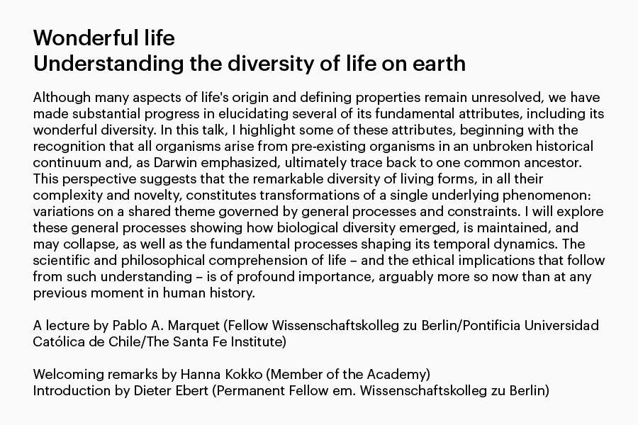 El académico Pablo Marquet impartirá la conferencia, titulada “Wonderful life. Understanding the diversity of life on earth”, el próximo 28 de abril en Berlín.