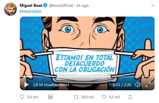 En cuanto a los influencer o personas del espectáculo también han mostrado sus reticencias en público. El tenista serbio Novak Djokovic expresó sus reservas a una vacuna y organizó varias competencias deportivas donde deportistas resultaron contagiados. Otro ejemplo es el español Miguel Bosé quien llamó a no usar mascarillas “ya que todo era una mentira”.