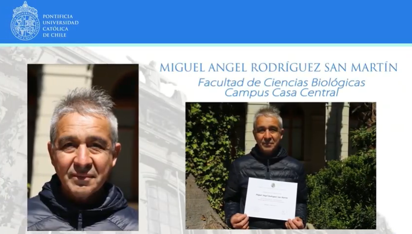 “Aún recuerdo ese día martes 26 de noviembre de 1995 que entré a este recinto educacional a trabajar en el Bioterio. Ya cumplido ese año me reincorporé al laboratorio de reproducción y desarrollo que estaba en el 5ª piso, cumpliendo otra labor de estafeta y auxiliar de aseo. La mayoría de las personas me tomaron estima y fui aprendiendo muchas cosas interesantes; también aprendí a cambiar mis modos y formas de vivir. En estos 25 años he conocido gente formidable y he visto pasar a muchos estudiantes que hoy son grandes científicos. También he visto jubilarse a profesores, bioquímicos, secretarias, administrativos y también a otros que se fueron para siempre”, Miguel Ángel.