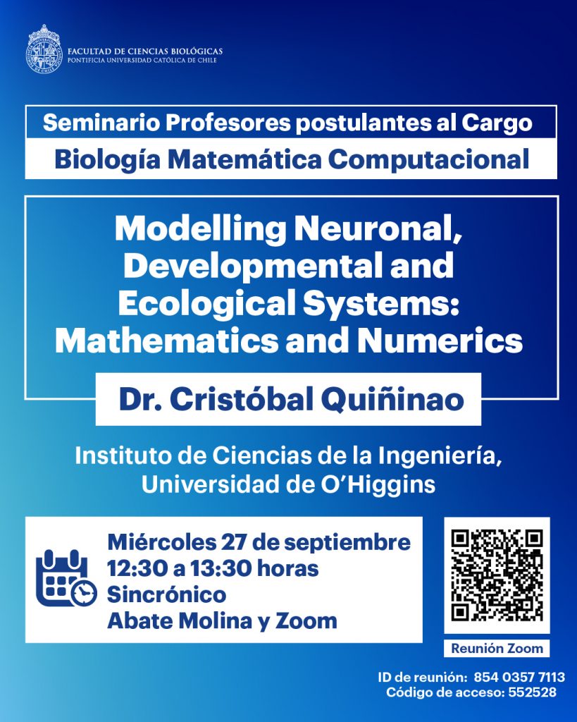 Título seminario: Modelling Neuronal, Developmental and Ecological Systems: Mathematics and Numerics por Dr. Cristóbal Quiñinao