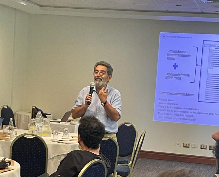 Con una alta participación (setenta personas en su totalidad) se inauguró la sesión que corresponde a la última en la que participa el Dr. Juan Correa, tras casi 15 años como Decano de la Facultad de Ciencias Biológicas. El grupo estuvo compuesto por 47 académicos/as de Ciencias Biológicas, 9 académicos/as de Medicina Veterinaria, 6 académicos del Instituto de Ingeniería Biológica y Médica y 8 funcionarios de Ciencias Biológicas.
