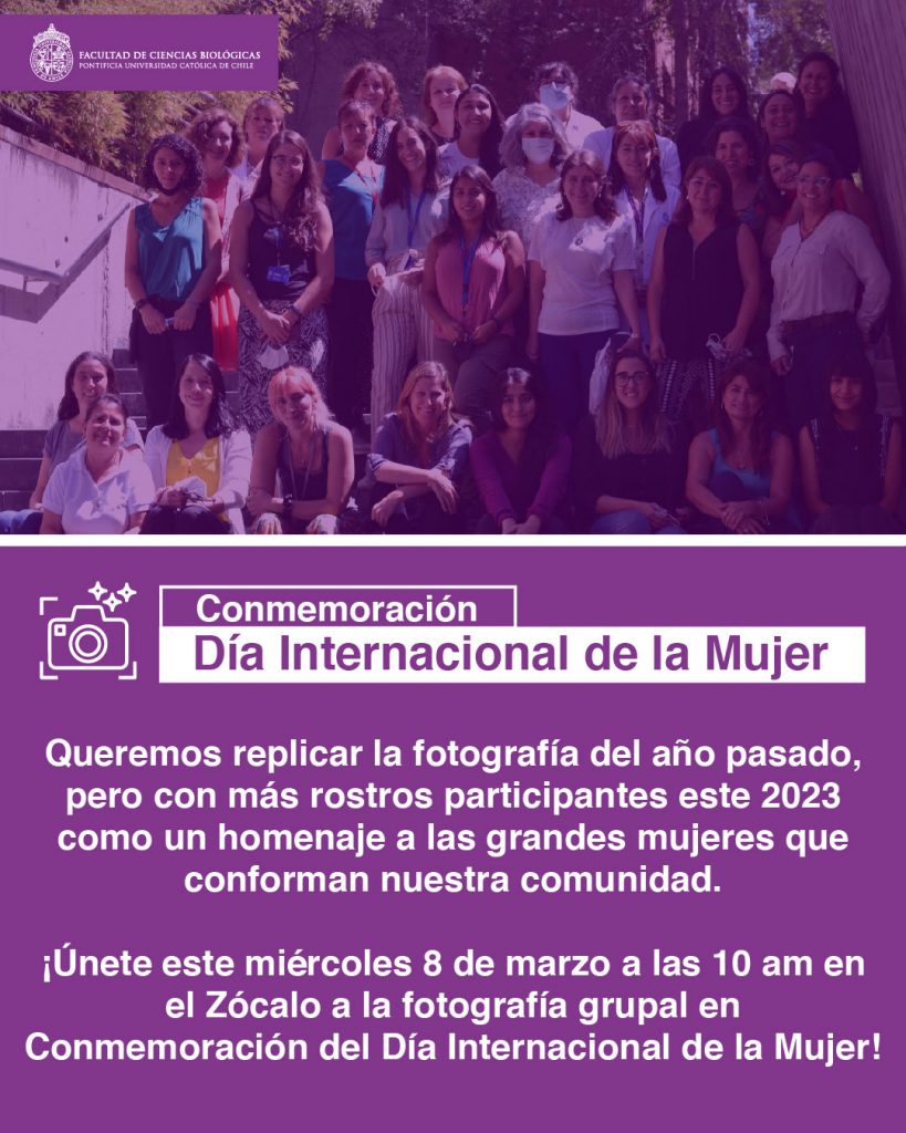 ¿Trabajas y/o estudias en la FCB? ¡Únete este miércoles 8 de noviembre a las 10 am a la fotografía grupal en Conmemoración del Día Internacional de la Mujer! Queremos replicar la fotografía del año 2022, pero con más rostros participantes para este año como un homenaje a las grandes mujeres que conforman nuestra comunidad.  No necesitas inscripción, solo sumarte a esta iniciativa.