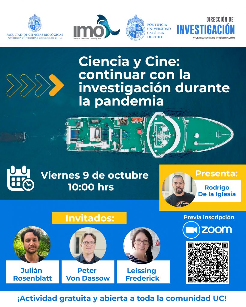 Ciencia y Cine, continuar con la investigación durante la pandemia: El viernes 9 de octubre se realizará el webinar “Ciencia y Cine: continuar con la investigación durante la pandemia”, donde se dará a conocer la historia y orígenes del viaje que se muestra en el documental Atacamex; lo que significa para la investigación oceanográfica en Chile y cómo se puede continuar este interesante trabajo así como la investigación en general en este contexto pandémico.