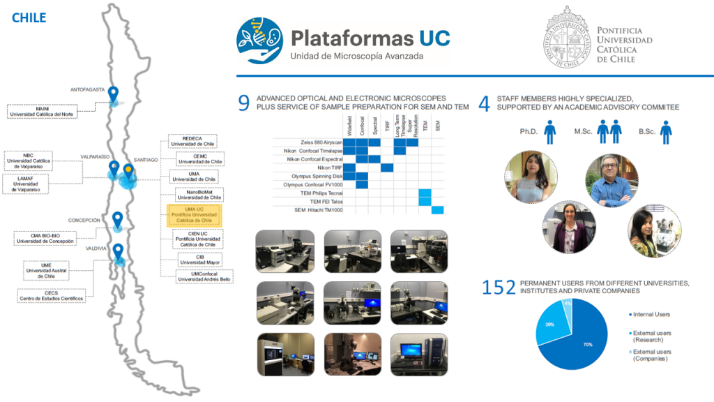 “Participar de estos grupos internacionales es fundamental para seguir mejorando, mantener el liderazgo nacional, y para abordar de mejor manera los desafíos que conlleva el trabajo con equipamiento avanzado, con el objetivo principal de apoyar y potenciar el trabajo de investigación de la UC y del país. Así mismo, el networking nacional también es vital para crecer, evaluar y complementar esfuerzos en busca de lograr los estándares que vemos afuera. Actualmente con un grupo de microscopistas de otras universidades de Chile nos encontramos preparando la segunda reunión anual de especialistas en equipamiento científico avanzado, una iniciativa similar a la reunión de Light Microscopy Facilities de Reino Unido, que busca potenciar la comunidad local y el desarrollo de estas unidades de servicio no solo de microscopía, sino también de otras disciplinas como citometría y secuenciación”, finaliza.
