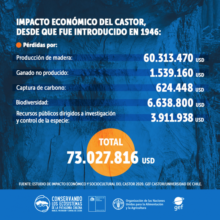 Según una investigación que estableció el valor económico y sociocultural de los daños del castor, en siete décadas de invasión, ha tenido un impacto de al menos $73 millones de dólares.
