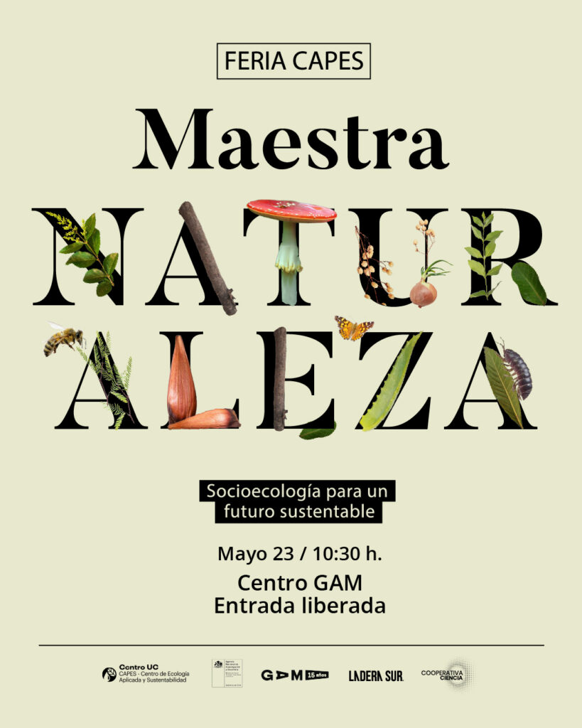 ¿Qué pasaría si respetáramos y escucháramos más a la naturaleza? Es la premisa bajo la cual el Centro de Ecología Aplicada y Sustentabilidad, (CAPES UC) invita a toda la ciudadanía a ser parte de la primera “Feria CAPES Maestra Naturaleza: Socioecología para un futuro sustentable”, que se realizará el 23 de mayo a partir de las 10:30 horas en el patio central del Centro Cultural Gabriela Mistral (GAM).